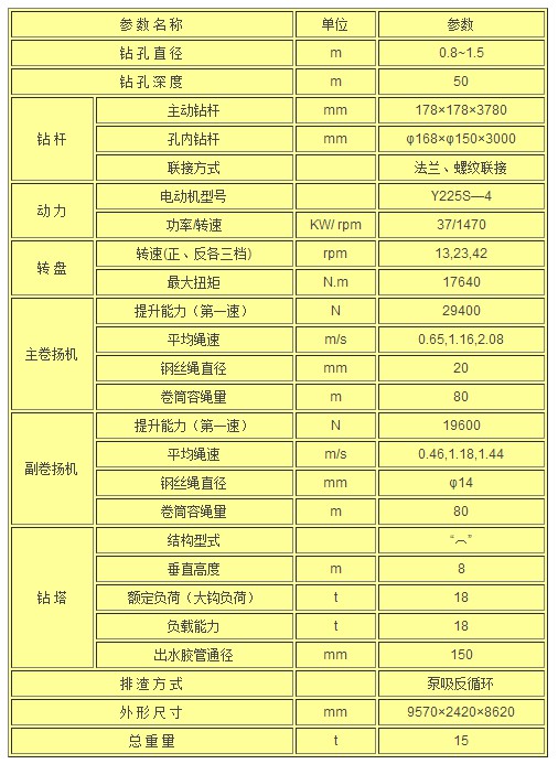 該機(jī)是一種組裝式轉(zhuǎn)盤鉆孔機(jī),適用于高層建筑、橋梁、港口的大口徑灌注樁基礎(chǔ)施工,亦可用于大口徑水井和其它工程建筑基礎(chǔ)施工。
